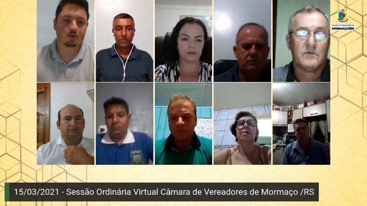 No dia 15 de março de 2021 realizou-se mais uma Sessão Ordinária do corrente ano, com a Presidência pelo Vereador Silvio Fernandes Sanderson, juntamente com os demais vereadores: Adelar Derlam, Edson Schroeder, Lair da Silva Farias, Marcos Arine Malaquias, Patricia Rodrigues, Sônia Mara Kuhn, Walmir Antonio de Oliveira e Wagner de Loreno.